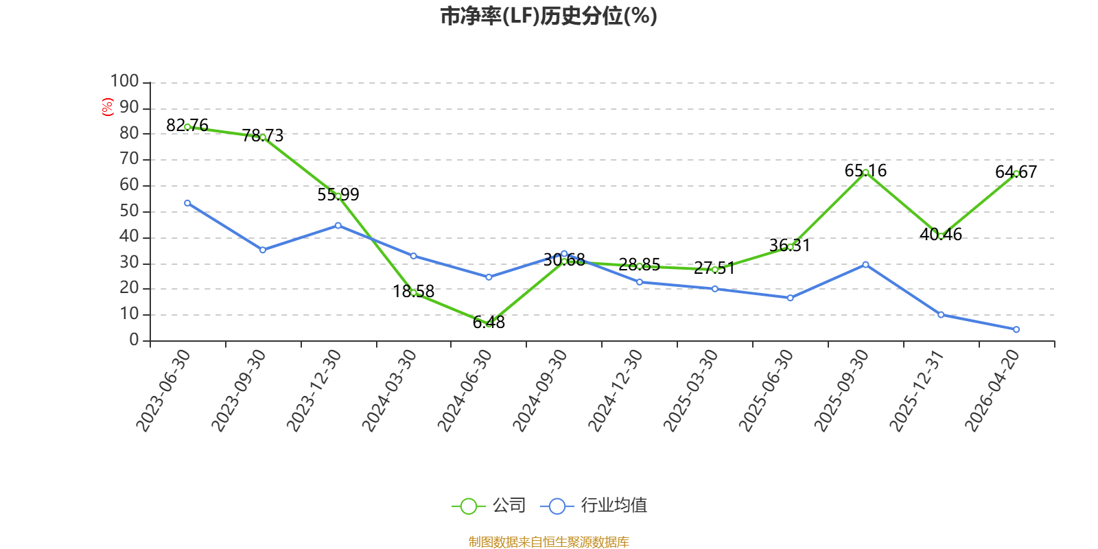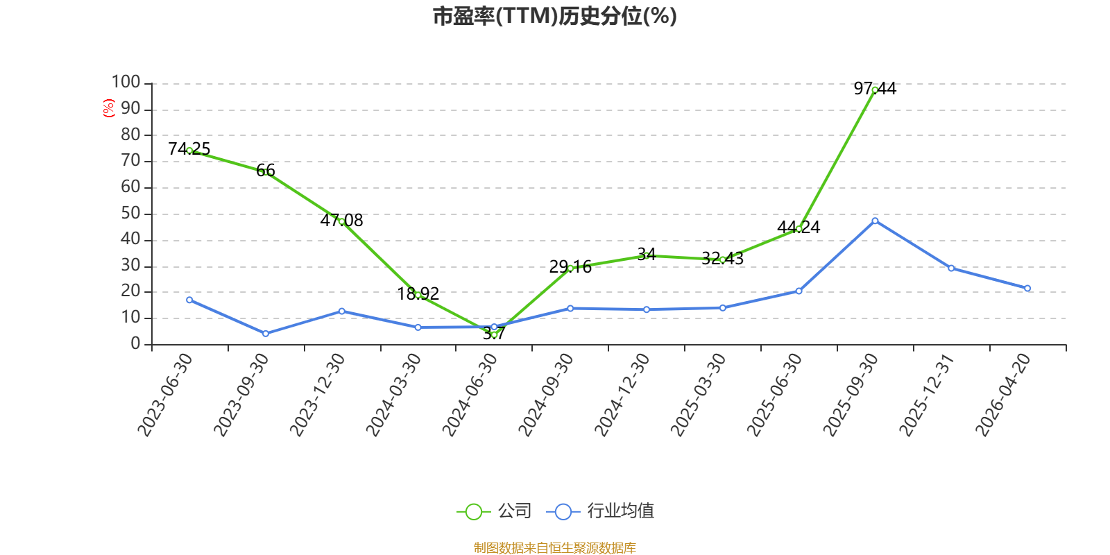 市盈率、市净率为负时,不显示当期分位数,会导致折线图中断。
