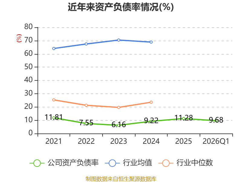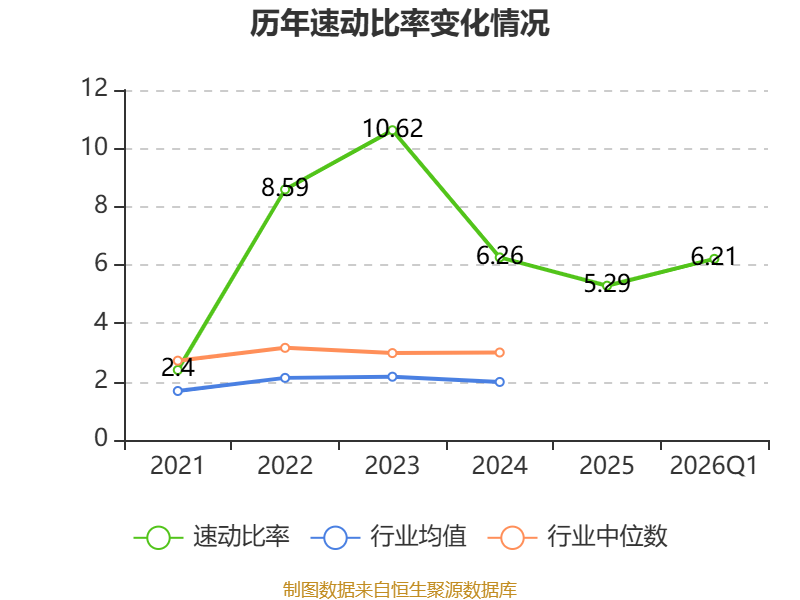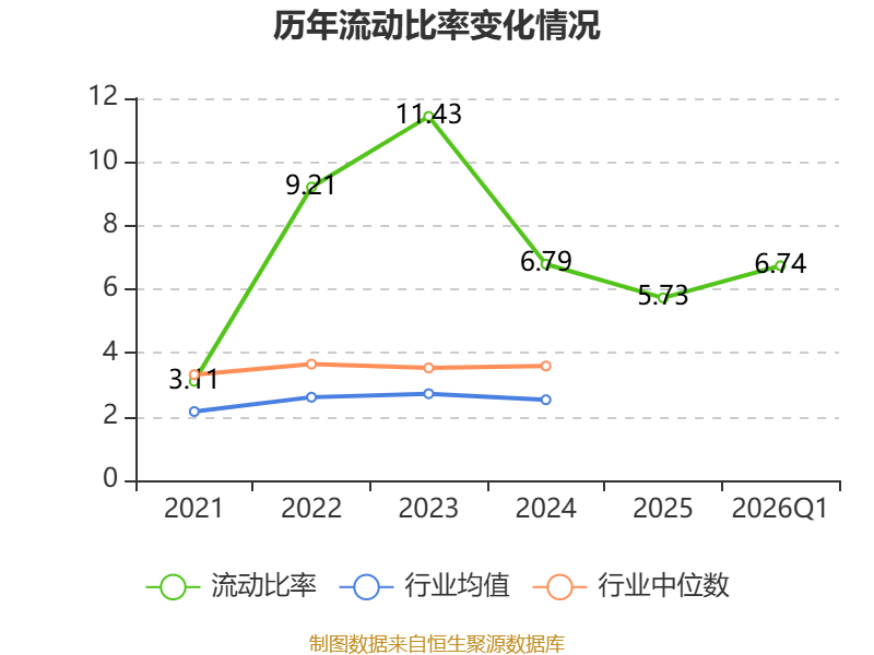 2026年第一季度,公司流动比率为6.74,速动比率为6.21。