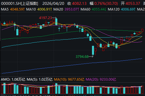 截至收盘,上证指数报收4082.13点,上涨0.76%;深证成指报收14966.75点,上涨0.55%;创业板指报收3677.58点,下跌0.02%。沪深京三市成交额达到26067亿元,较上一交易日放大约1500亿元。