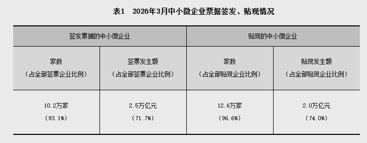2026年3月,商业汇票承兑发生额3.5万亿元,贴现发生额2.7万亿元。2026年3月末,商业汇票承兑余额20.7万亿元,同比增加6.3%;贴现余额15.7万亿元,同比增加7.6%。