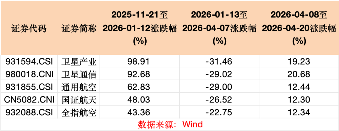 从反弹表现看,2025年11月21日至2026年1月12日是商业航天板块第一轮爆发期,在这一阶段,中证卫星产业指数、国证商用卫星通信产业指数涨幅均超90%。