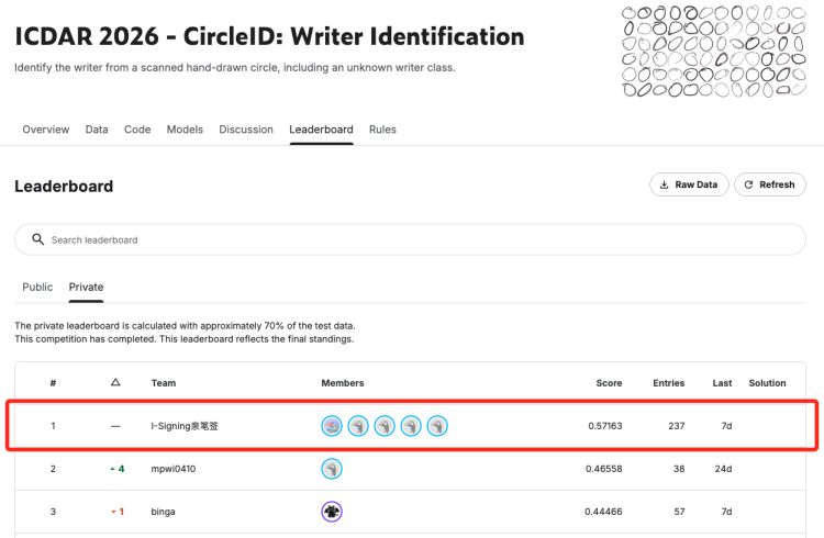 日前,ICDAR 2026 CircleID书写者身份识别全球竞赛结果揭晓,重庆亲笔签数字科技有限公司以超出第二名10.6个百分点的绝对优势,从全球113支队伍中斩获世界第一。硅谷巨头与一线城市AI明星企业,均被这家扎根西部的企业甩在身后。