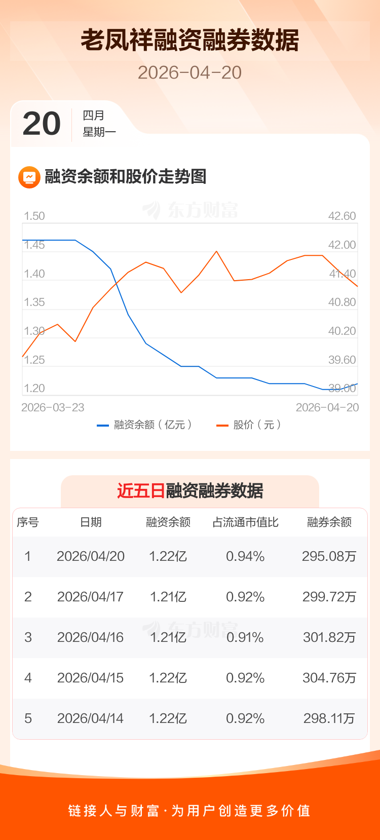 交易所最新数据显示,老凤祥于2026年4月20日获融资买入336.95万元,融资偿还221.06万元,当日融资净买入115.9万元。目前,该股融资余额1.22亿,占流通市值比例为0.94%。