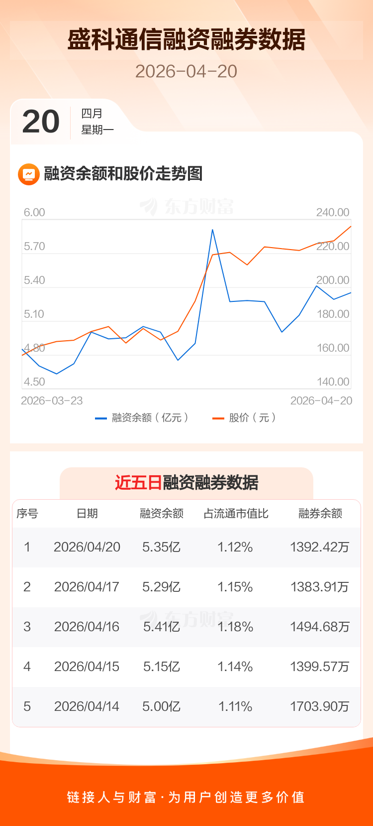 交易所最新数据显示,盛科通信于2026年4月20日获融资买入1.45亿元,融资偿还1.38亿元,当日融资净买入681.99万元。目前,该股融资余额5.35亿,占流通市值比例为1.12%。