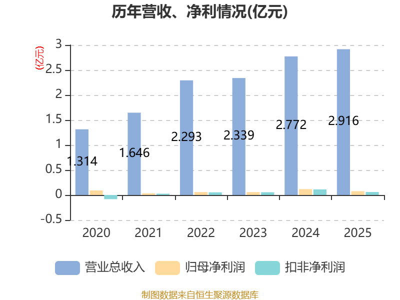 中证智能财讯合金投资(000633)4月21日披露2025年年度报告。2025年,公司实现营业总收入2.92亿元,同比增长5.19%;归母净利润757.17万元,同比下降35.16%;扣非净利润602.2万元,同比下降46.07%;经营活动产生的现金流量净额为2904.55万元,同比增长11.06%;报告期内,合金投资基本每股收益为0.0197元,加权平均净资产收益率为3.93%。