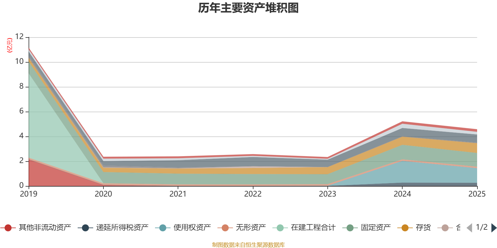 资产重大变化方面,截至2025年末,公司使用权资产较上年末减少32.86%,占公司总资产比重下降7.91个百分点;存货较上年末增加19.99%,占公司总资产比重上升4.63个百分点;货币资金较上年末减少37.61%,占公司总资产比重下降1.91个百分点;应收票据及应收账款较上年末减少1.12%,占公司总资产比重上升1.61个百分点。