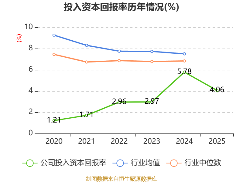数据显示,2025年公司加权平均净资产收益率为3.93%,较上年同期下降2.42个百分点。公司2025年投入资本回报率为4.06%,较上年同期下降1.72个百分点。