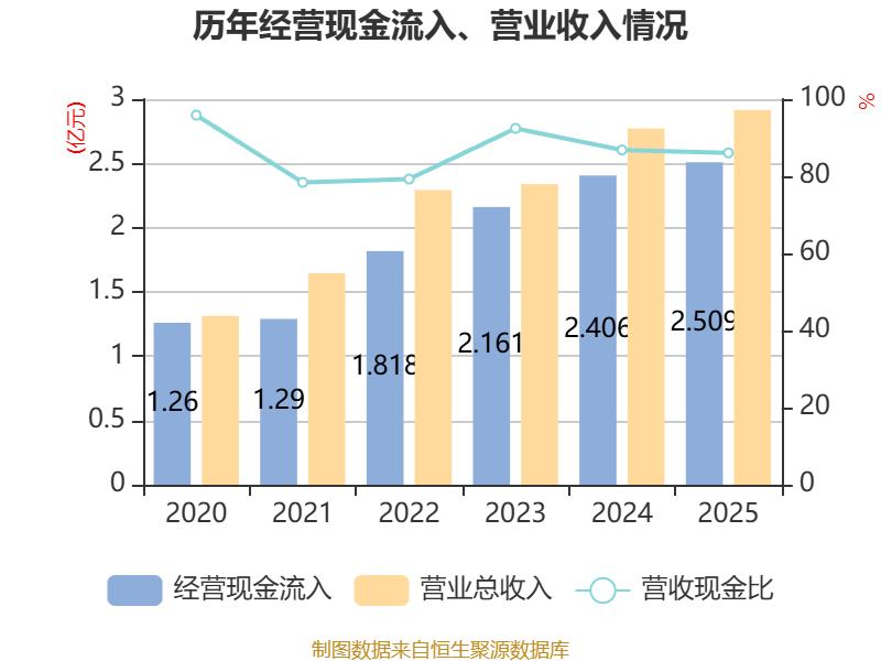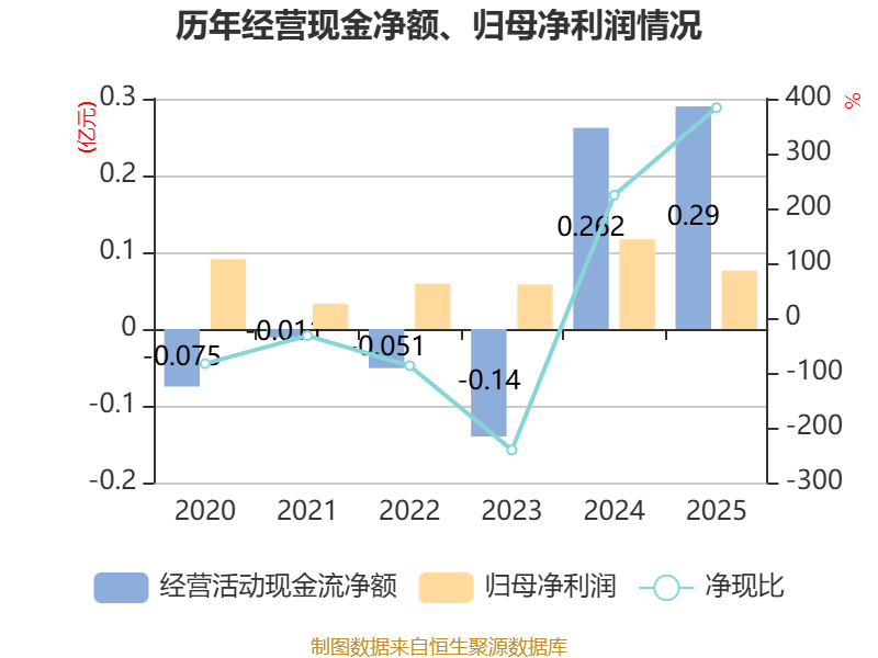 截至2025年,公司经营活动现金流净额为2904.55万元,同比增长11.06%;筹资活动现金流净额-3593.74万元,同比减少3037.08万元;投资活动现金流净额-605.35万元,上年同期为589.96万元。