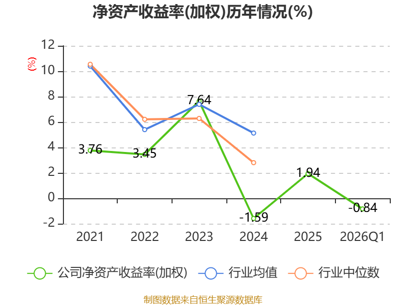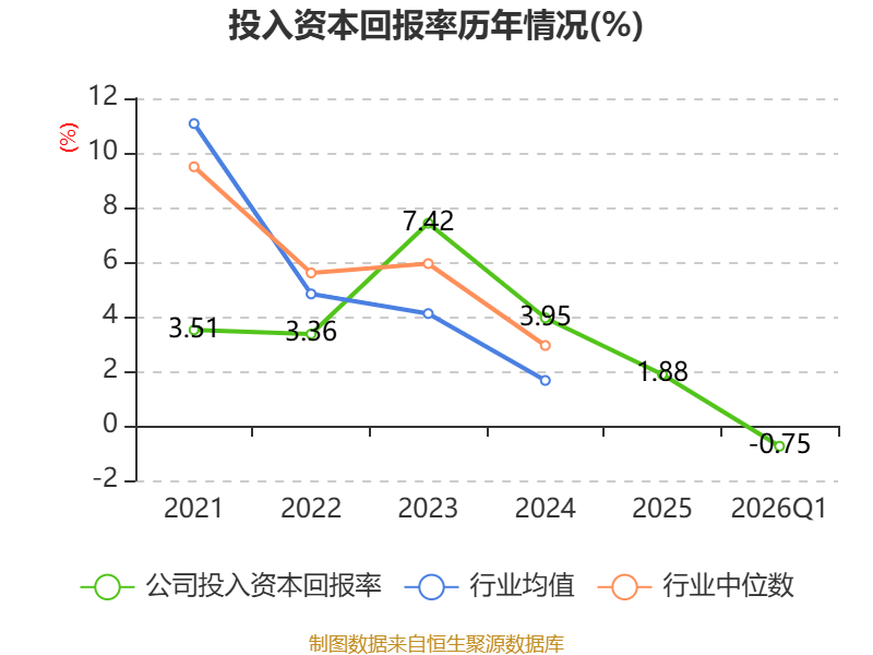 盈利能力方面, 2026年一季度公司加权平均净资产收益率为-0.84%,同比下降0.62个百分点。公司2026年第一季度投入资本回报率为-0.75%,较上年同期下降0.55个百分点。