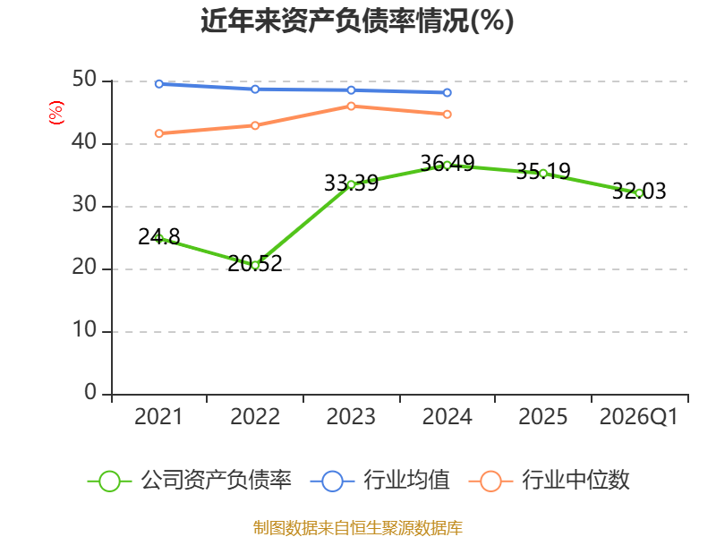 负债重大变化方面,截至2026年一季度末,公司应付职工薪酬较上年末减少56.19%,占公司总资产比重下降1.26个百分点;应付票据及应付账款较上年末减少8.42%,占公司总资产比重下降0.96个百分点;应交税费较上年末减少29.19%,占公司总资产比重下降0.77个百分点;合同负债较上年末减少17.35%,占公司总资产比重下降0.21个百分点。