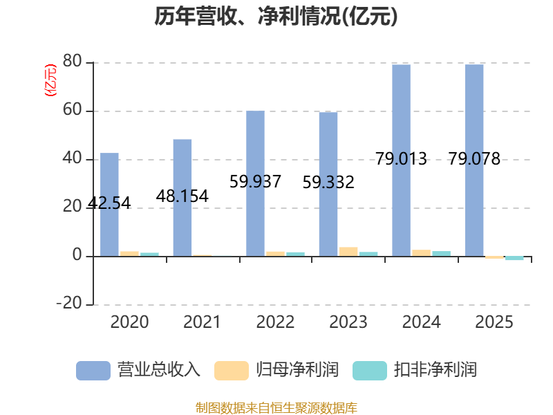 中证智能财讯国光电器(002045)4月21日披露2025年年度报告。2025年,公司实现营业总收入79.08亿元,同比增长0.08%;归母净利润亏损1.13亿元,上年同期盈利2.53亿元;扣非净利润亏损1.74亿元,上年同期盈利1.99亿元;经营活动产生的现金流量净额为1.73亿元,同比增长13.95%;报告期内,国光电器基本每股收益为-0.2元,加权平均净资产收益率为-2.61%。公司2025年度分配预案为:拟向全体股东每10股派现0.15元(含税)。