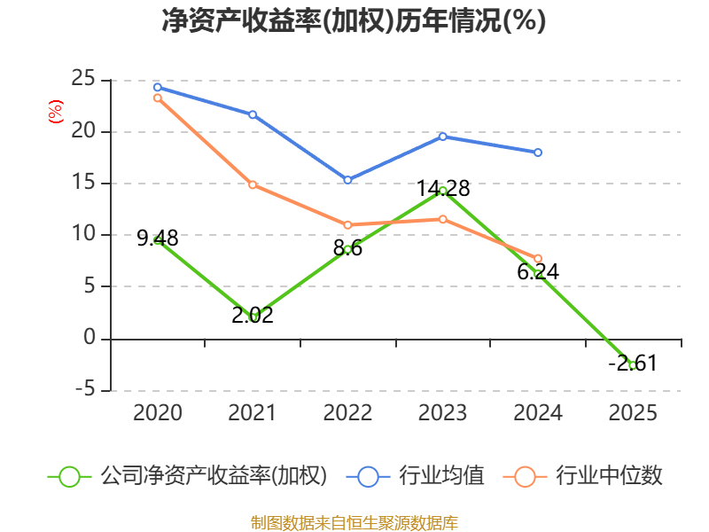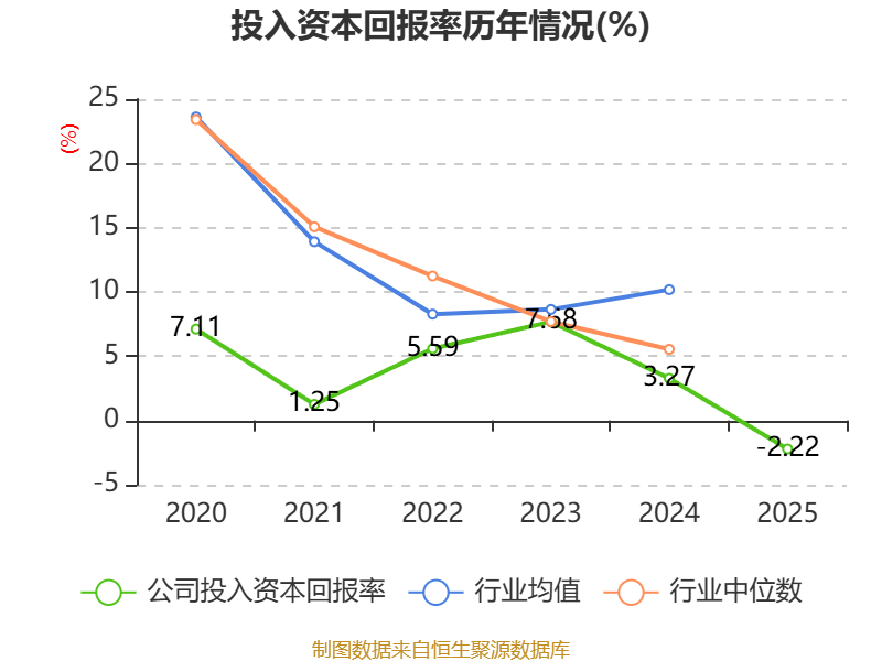 数据显示,2025年公司加权平均净资产收益率为-2.61%,较上年同期下降8.85个百分点。公司2025年投入资本回报率为-2.22%,较上年同期下降5.49个百分点。