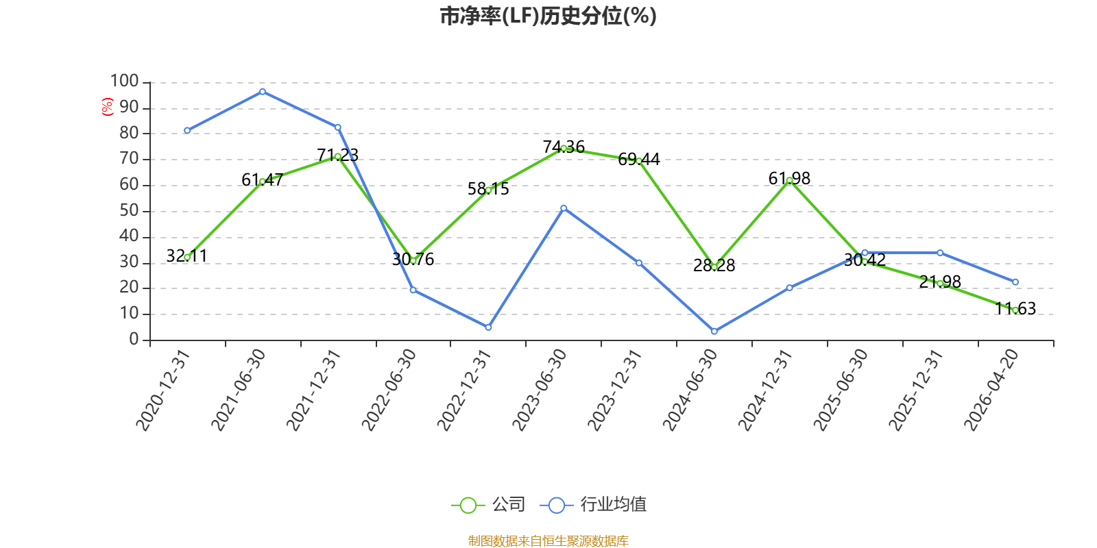 市盈率、市净率为负时,不显示当期分位数,会导致折线图中断。