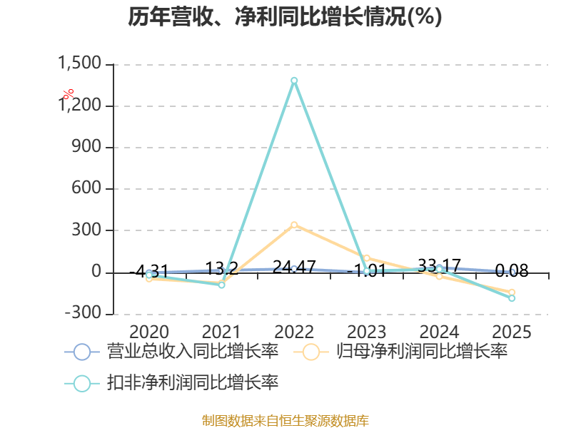 负债重大变化方面,截至2025年末,公司短期借款较上年末增加66.53%,占公司总资产比重上升13.13个百分点;应付票据及应付账款较上年末减少17.27%,占公司总资产比重下降4.96个百分点;一年内到期的非流动负债较上年末减少93.97%,占公司总资产比重下降2.1个百分点;合同负债较上年末减少50.97%,占公司总资产比重下降1.04个百分点。