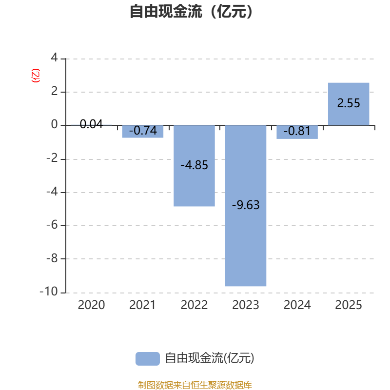 截至2025年,公司经营活动现金流净额为-5106.65万元,同比减少1.61亿元;筹资活动现金流净额4730.31万元,同比增加1.61亿元;投资活动现金流净额1.9亿元,上年同期为-3.92亿元。