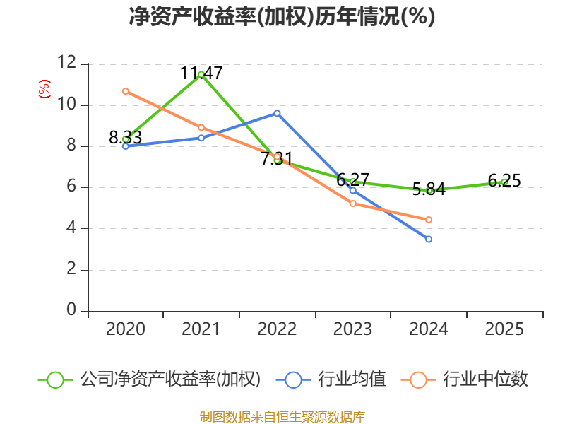 数据显示,2025年公司加权平均净资产收益率为6.25%,较上年同期上升0.41个百分点。公司2025年投入资本回报率为4.17%,较上年同期上升0.06个百分点。