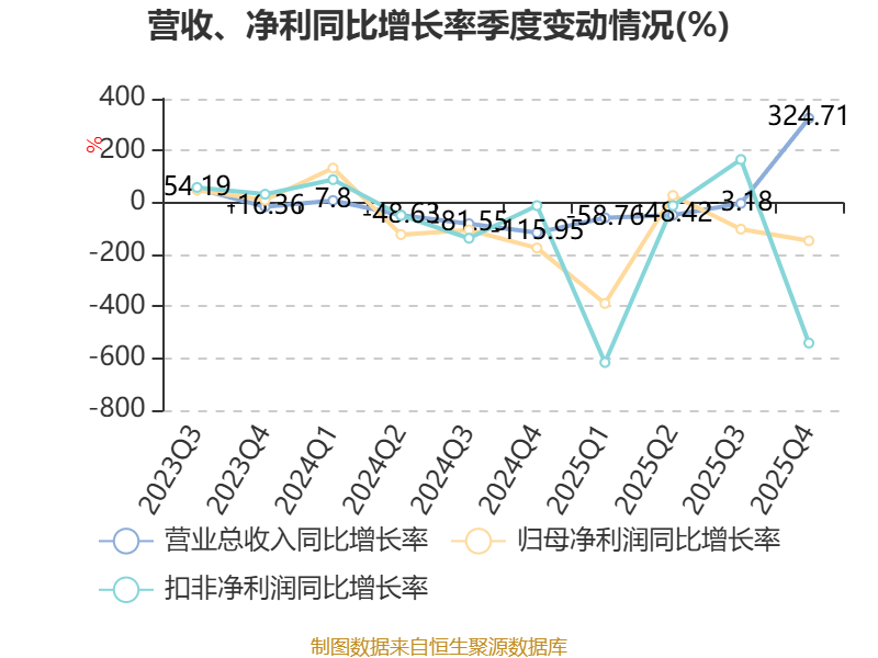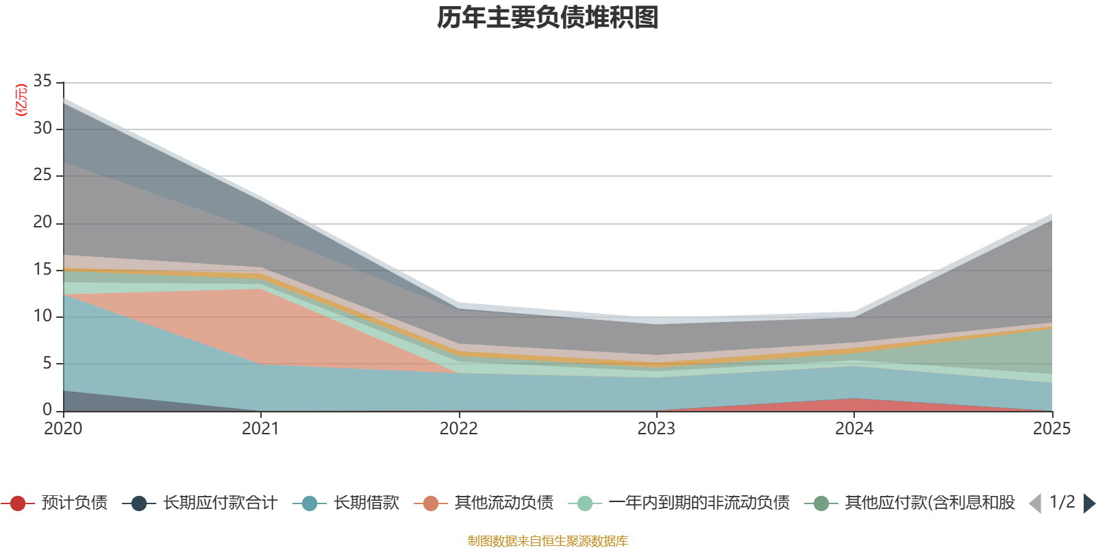 负债重大变化方面,截至2025年末,公司应付票据及应付账款较上年末增加316.67%,占公司总资产比重上升90.89个百分点;其他应付款(含利息和股利)较上年末增加541.02%,占公司总资产比重上升43.78个百分点;预计负债较上年末减少100%,占公司总资产比重下降11.41个百分点;一年内到期的非流动负债较上年末增加47.57%,占公司总资产比重上升4.32个百分点。