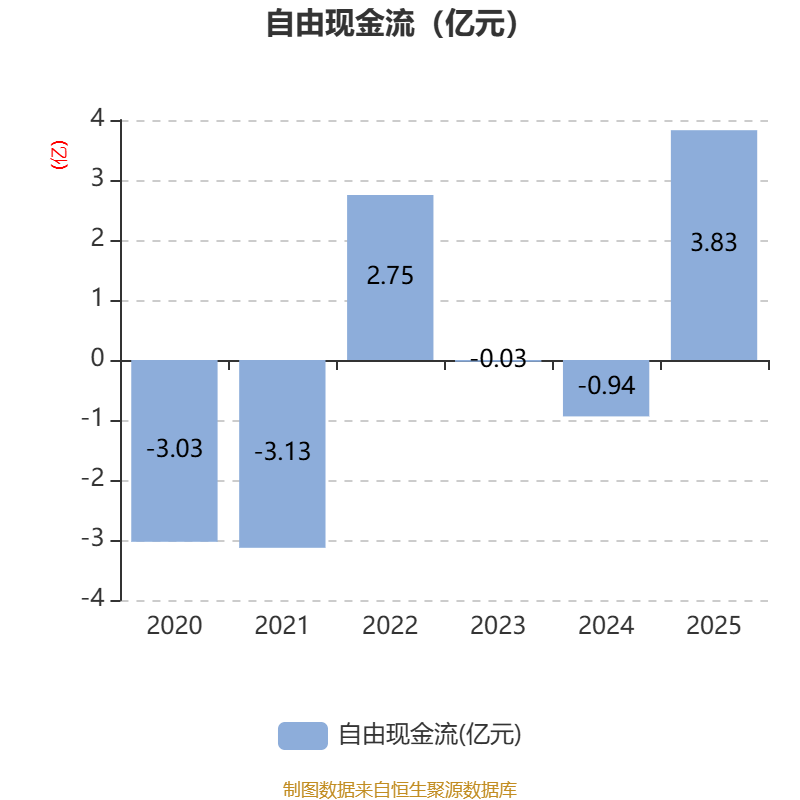 截至2025年,公司经营活动现金流净额为3571.69万元,同比增加7441.55万元;筹资活动现金流净额-3875.05万元,同比增加498.97万元;投资活动现金流净额-157.99万元,上年同期为8951.51万元。