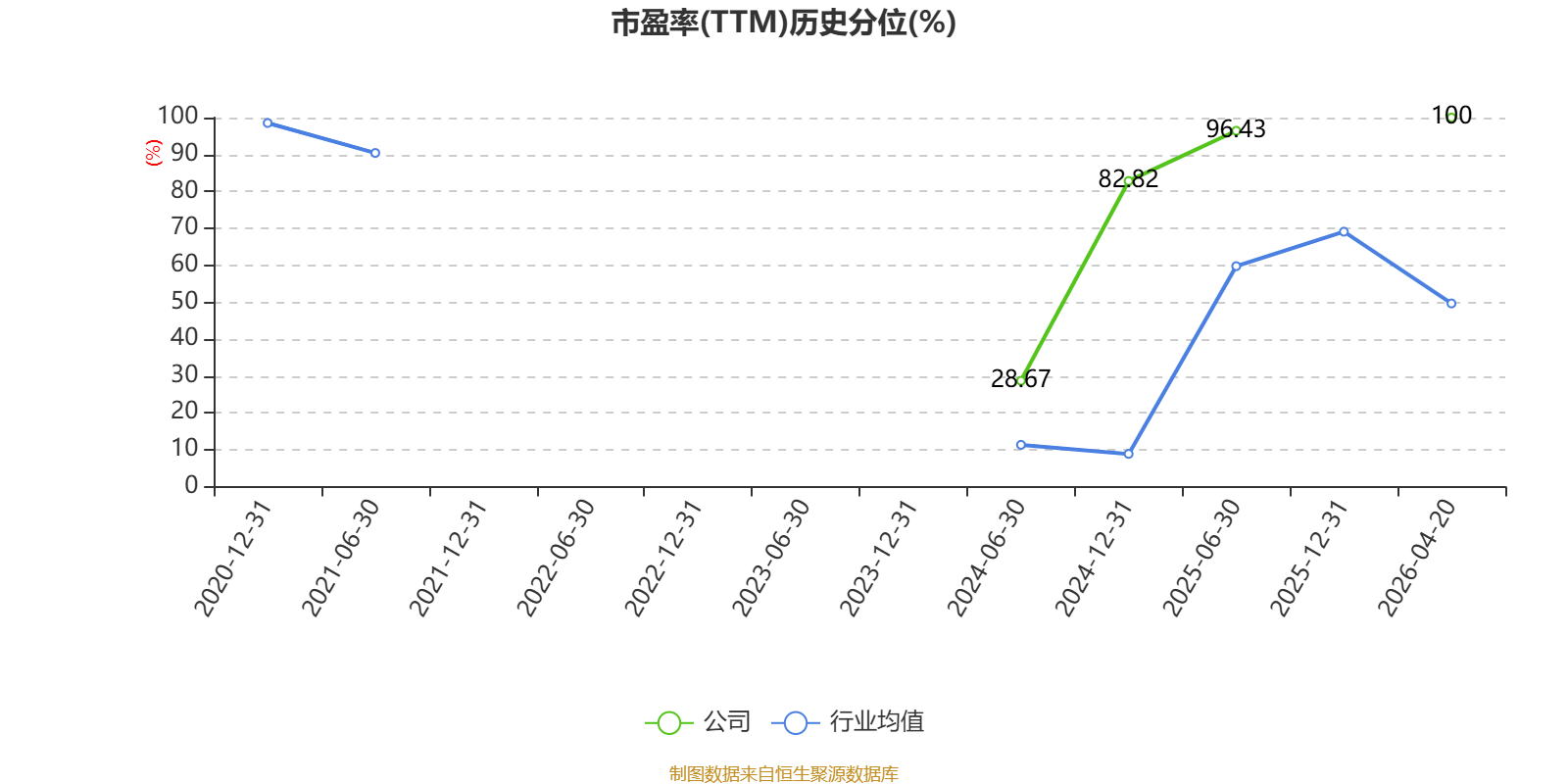 市盈率、市净率为负时,不显示当期分位数,会导致折线图中断。