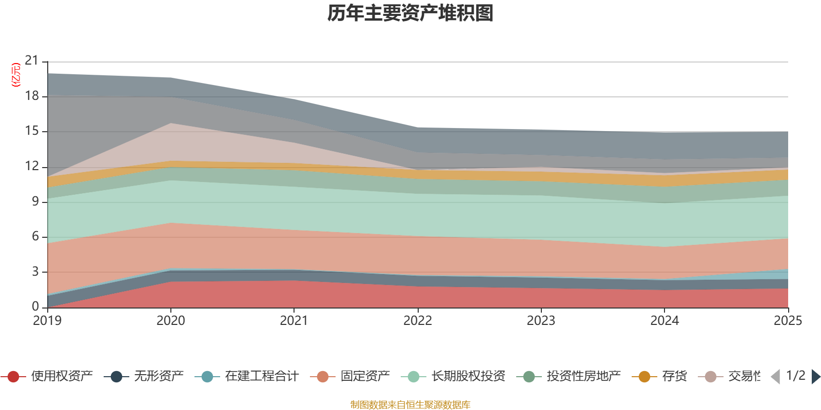 资产重大变化方面,截至2025年末,公司在建工程合计较上年末增加821%,占公司总资产比重上升5.15个百分点;货币资金较上年末减少29.31%,占公司总资产比重下降2.32个百分点;固定资产较上年末减少5.28%,占公司总资产比重下降1.05个百分点;应收票据及应收账款较上年末增加22.53%,占公司总资产比重上升0.88个百分点。