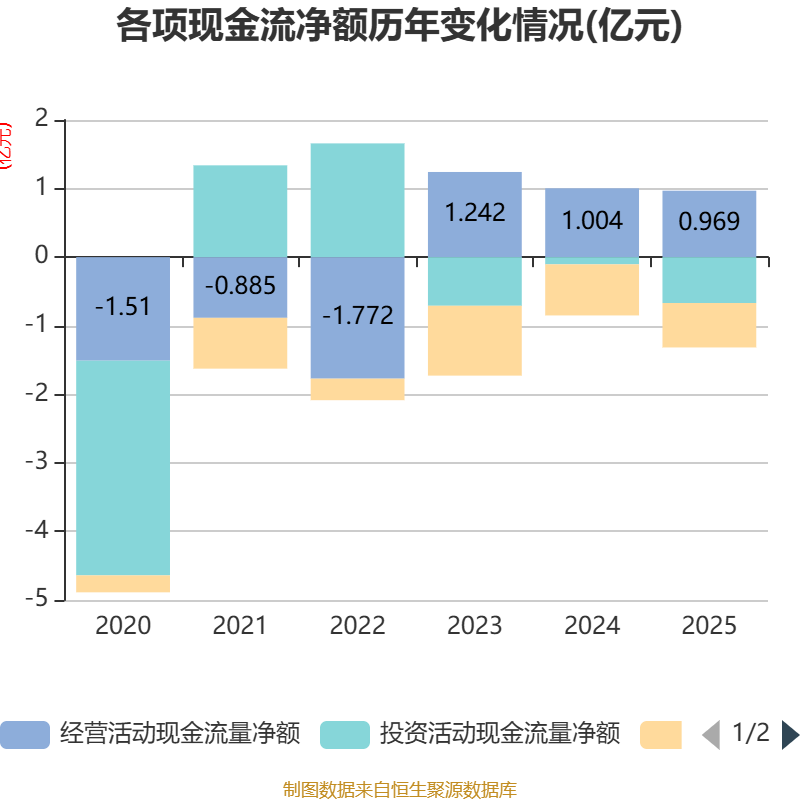 截至2025年,公司经营活动现金流净额为9685.41万元,同比下降3.54%;筹资活动现金流净额-6481.4万元,同比增加966.88万元;投资活动现金流净额-6688.1万元,上年同期为-1051.41万元。