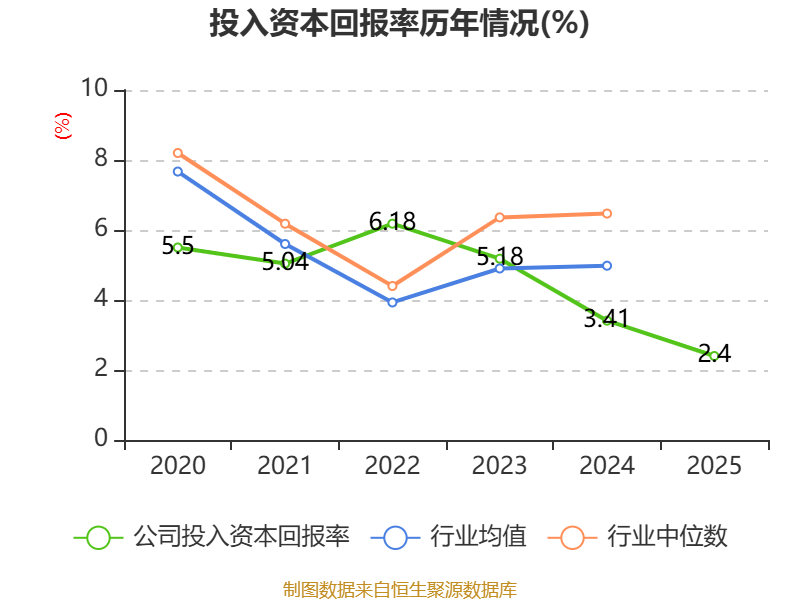 数据显示,2025年公司加权平均净资产收益率为2.94%,较上年同期下降1.28个百分点。公司2025年投入资本回报率为2.4%,较上年同期下降1.01个百分点。