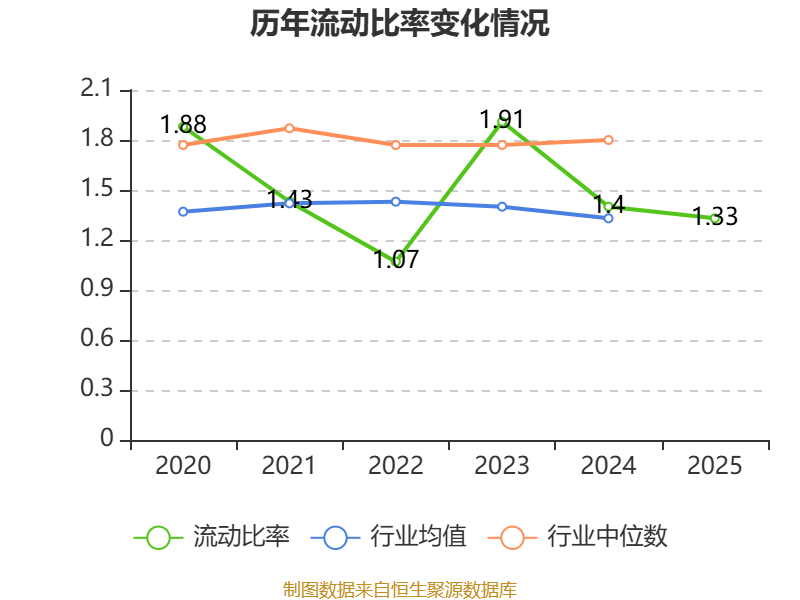 2025年,公司流动比率为1.33,速动比率为1.03。
