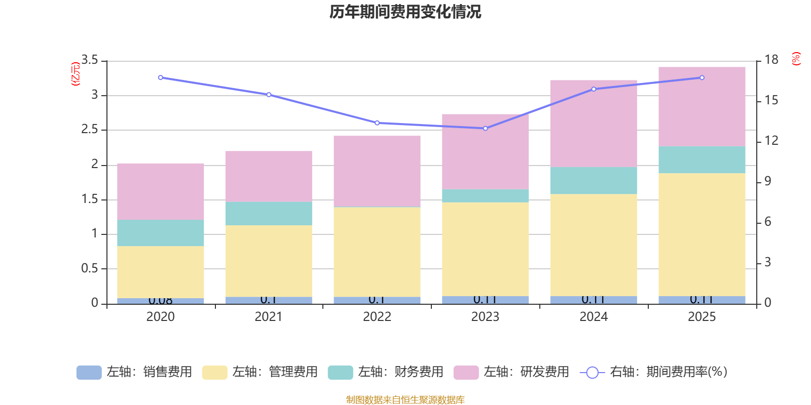 2025年全年,公司研发投入金额为1.14亿元,同比下降8.89%;研发投入占营业收入比例为5.6%,相比上年同期下降0.58个百分点。此外,公司全年研发投入资本化率为0%。