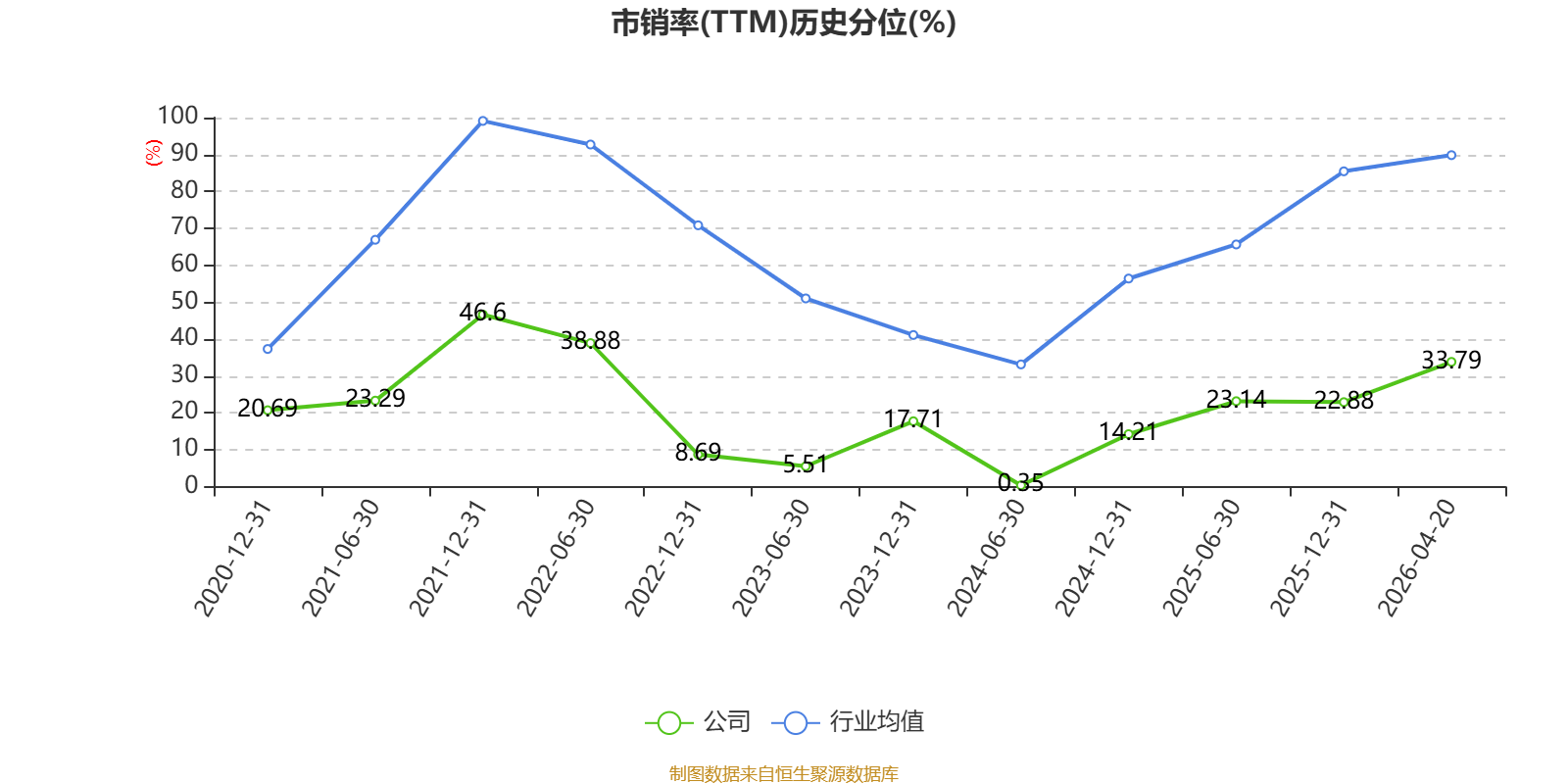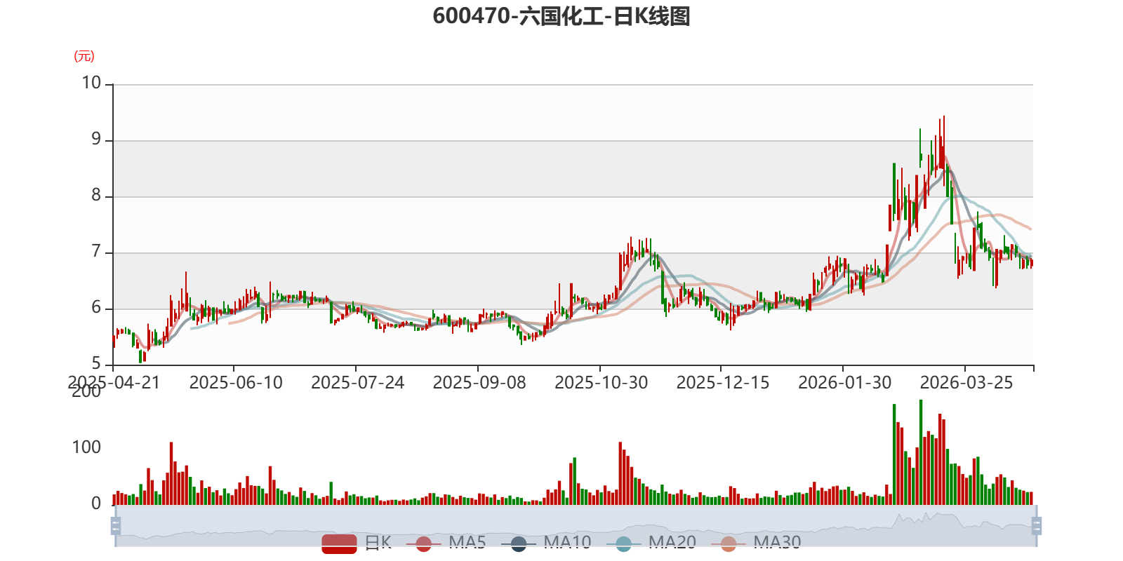 以4月20日收盘价计算,六国化工目前市盈率(TTM)约为-7.85倍,市净率(LF)约2.22倍,市销率(TTM)约0.56倍。