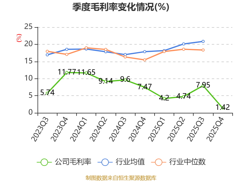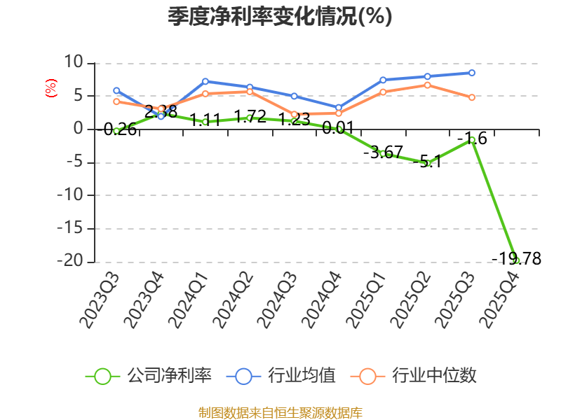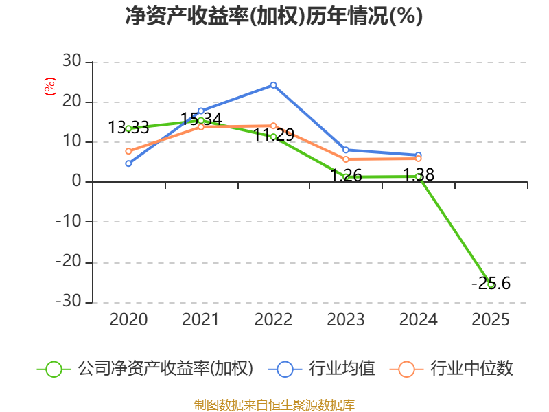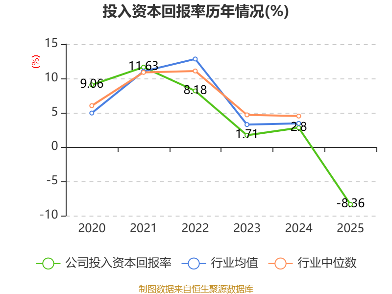 数据显示,2025年公司加权平均净资产收益率为-25.6%,较上年同期下降26.98个百分点。公司2025年投入资本回报率为-8.36%,较上年同期下降11.16个百分点。