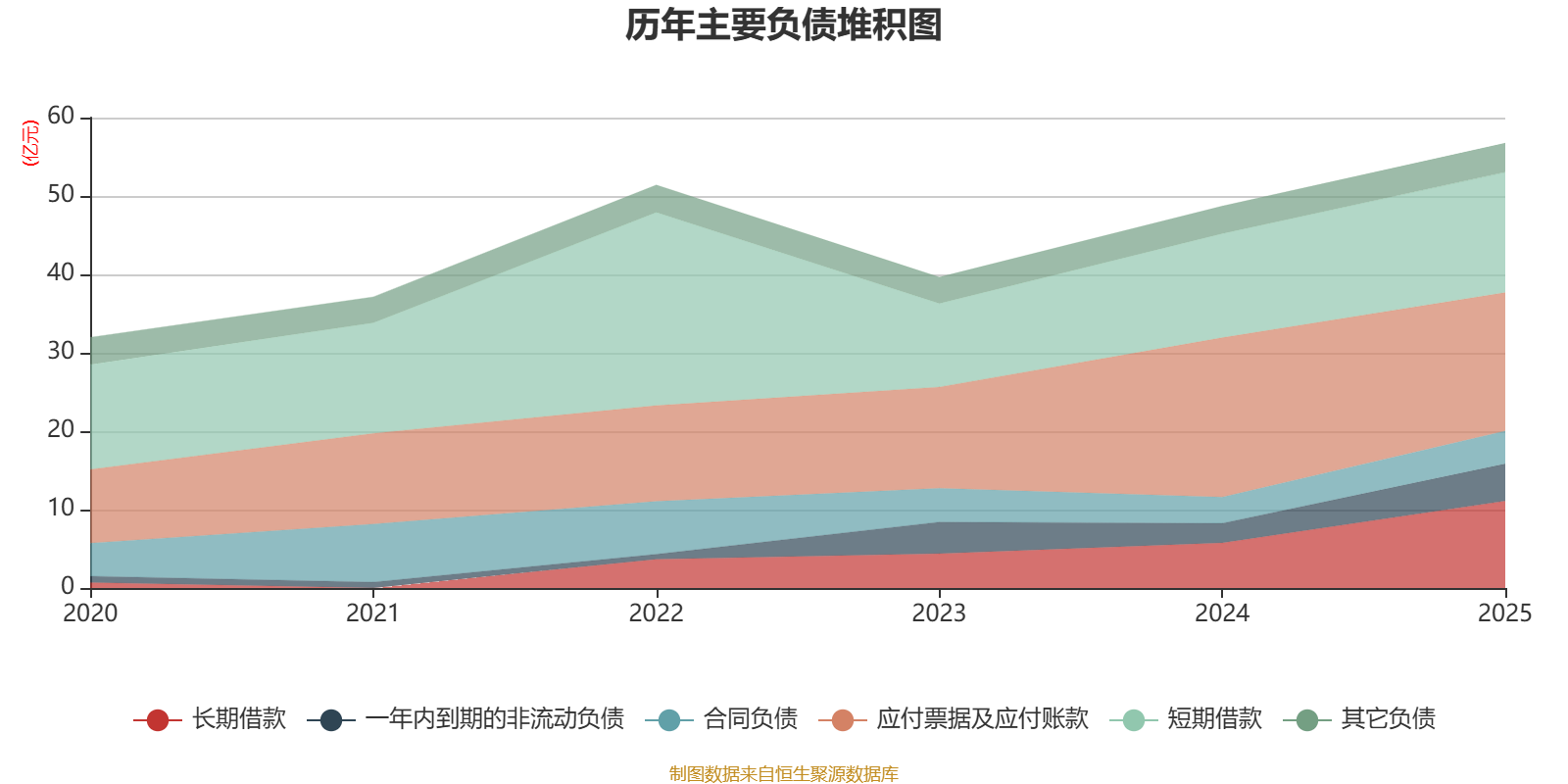 负债重大变化方面,截至2025年末,公司应付票据及应付账款较上年末减少13.05%,占公司总资产比重下降6.16个百分点;长期借款较上年末增加93.29%,占公司总资产比重上升6.12个百分点;一年内到期的非流动负债较上年末增加88.46%,占公司总资产比重上升2.52个百分点;短期借款较上年末增加15.49%,占公司总资产比重上升0.85个百分点。