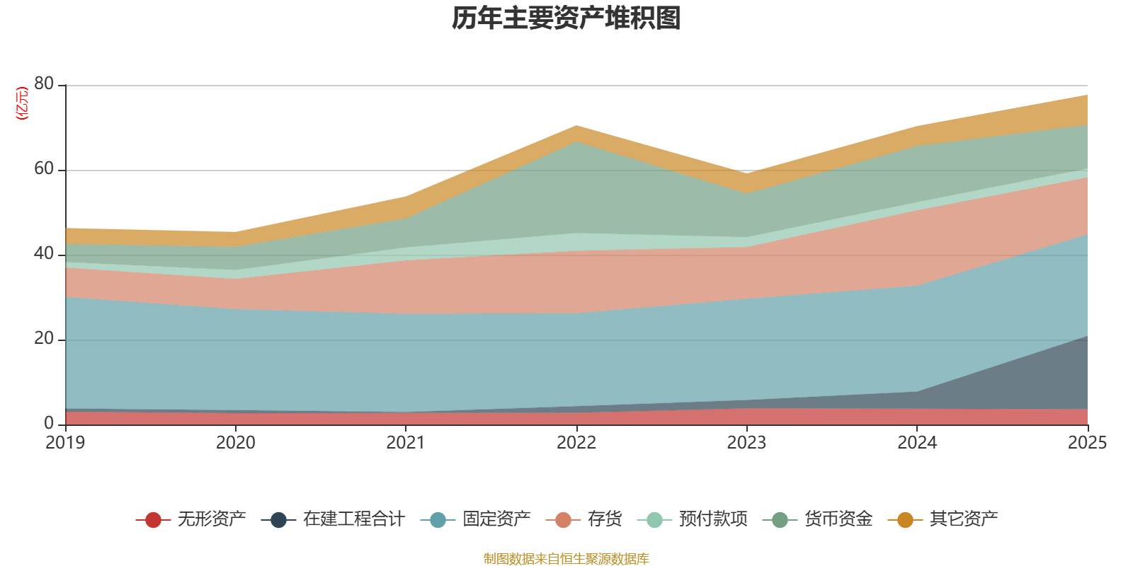 资产重大变化方面,截至2025年末,公司在建工程合计较上年末增加328.41%,占公司总资产比重上升16.52个百分点;存货较上年末减少24.5%,占公司总资产比重下降8个百分点;货币资金较上年末减少22.48%,占公司总资产比重下降5.63个百分点;固定资产较上年末减少4.16%,占公司总资产比重下降4.71个百分点。