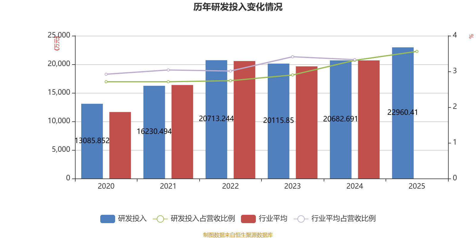2025年全年,公司研发投入金额为2.3亿元,同比增长11.01%;研发投入占营业收入比例为3.56%,相比上年同期上升0.25个百分点。此外,公司全年研发投入资本化率为0%。