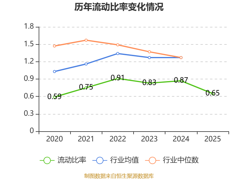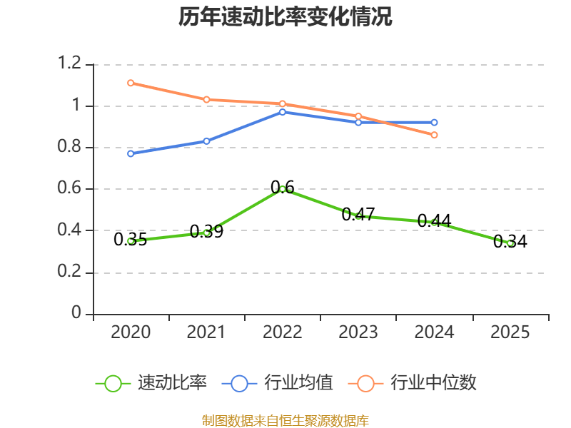 2025年,公司流动比率为0.65,速动比率为0.34。