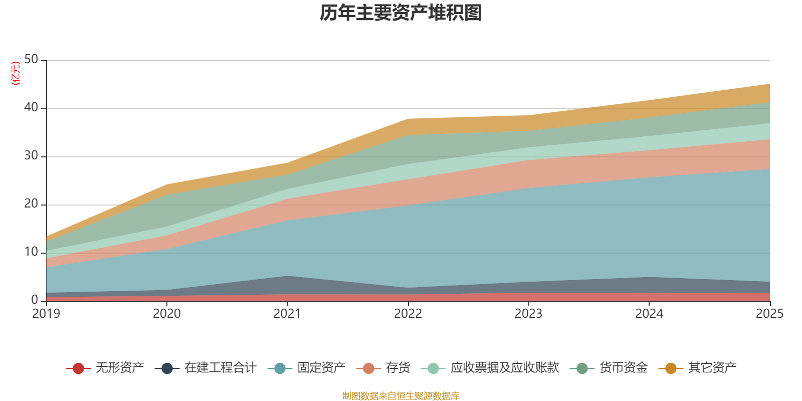 资产重大变化方面,截至2025年末,公司在建工程合计较上年末减少27.93%,占公司总资产比重下降2.65个百分点;固定资产较上年末增加13.08%,占公司总资产比重上升2.26个百分点;货币资金较上年末增加14.02%,占公司总资产比重上升0.5个百分点;无形资产较上年末减少4.2%,占公司总资产比重下降0.45个百分点。