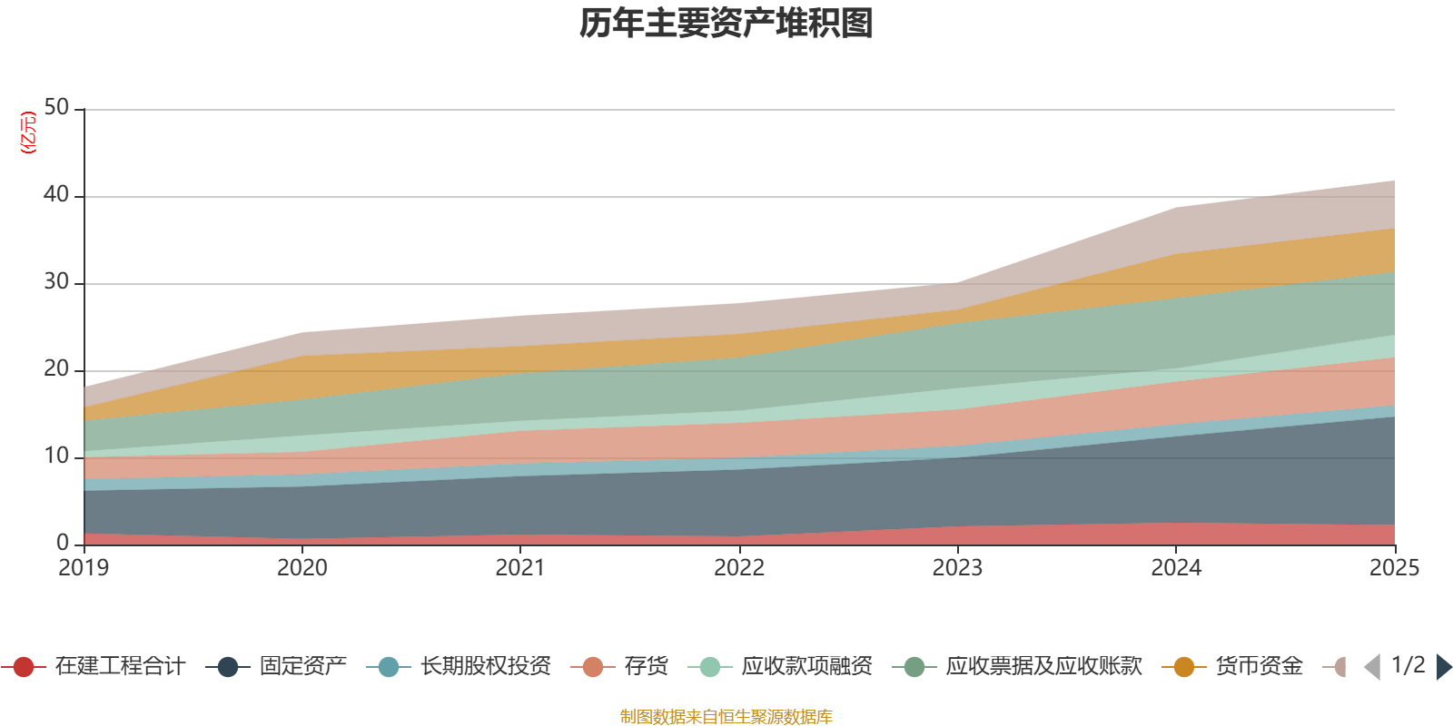 资产重大变化方面,截至2025年末,公司固定资产较上年末增加25.51%,占公司总资产比重上升4.15个百分点;应收票据及应收账款较上年末减少10.09%,占公司总资产比重下降3.49个百分点;应收款项融资较上年末增加70.4%,占公司总资产比重上升2.26个百分点;交易性金融资产合计较上年末减少88.48%,占公司总资产比重下降2.08个百分点。