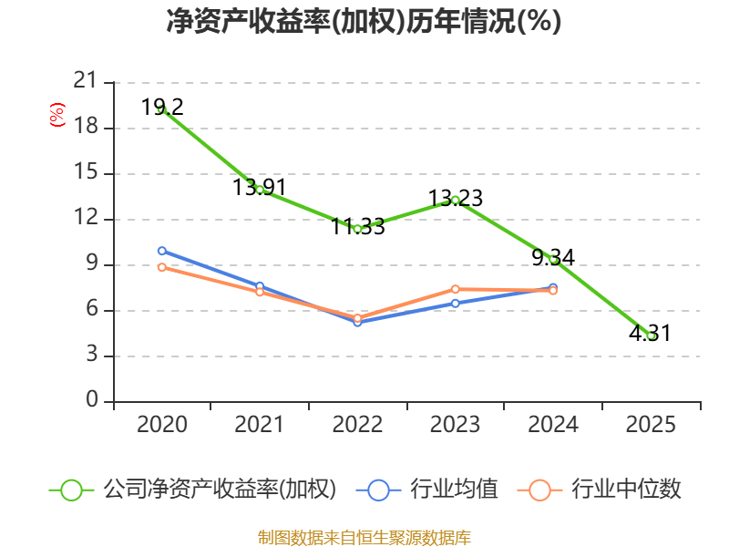数据显示,2025年公司加权平均净资产收益率为4.31%,较上年同期下降5.03个百分点。公司2025年投入资本回报率为3.71%,较上年同期下降3.41个百分点。