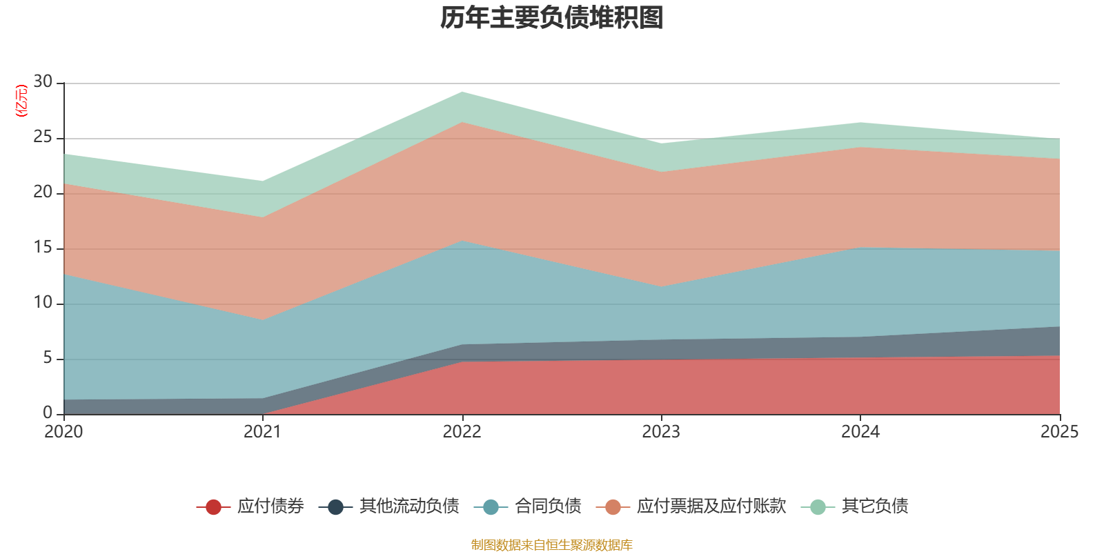 负债重大变化方面,截至2025年末,公司其他流动负债较上年末增加41.03%,占公司总资产比重上升1.93个百分点;合同负债较上年末减少15.62%,占公司总资产比重下降1.72个百分点;应付债券较上年末增加3.47%,占公司总资产比重上升1.05个百分点;应付票据及应付账款较上年末减少8.06%,占公司总资产比重下降0.42个百分点。