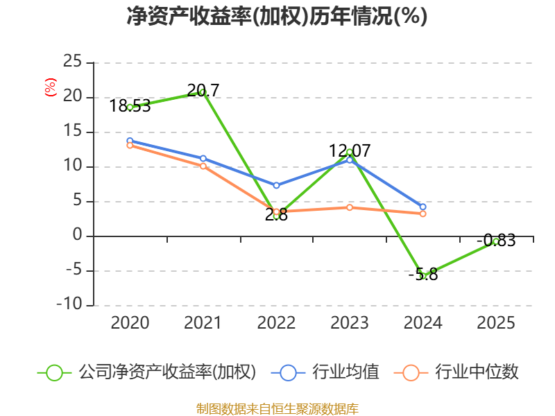 数据显示,2025年公司加权平均净资产收益率为-0.83%,较上年同期上升4.97个百分点。公司2025年投入资本回报率为-0.56%,较上年同期上升4.95个百分点。