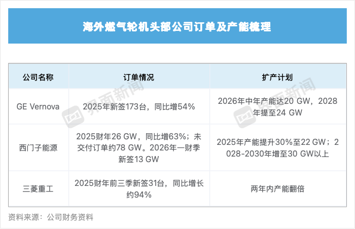 海外燃气轮机头部公司订单及产能梳理。制图:蒋习