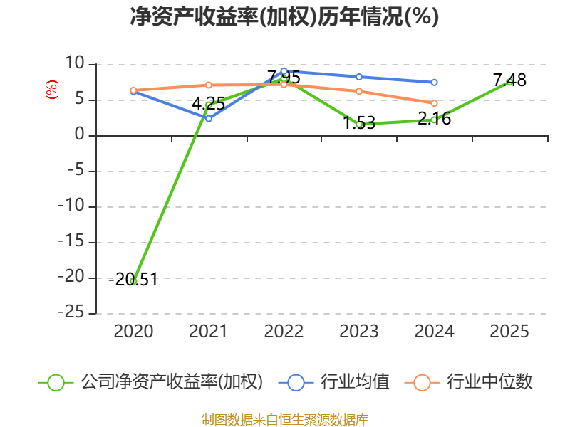 数据显示,2025年公司加权平均净资产收益率为7.48%,较上年同期上升5.32个百分点。公司2025年投入资本回报率为3.97%,较上年同期上升2.14个百分点。