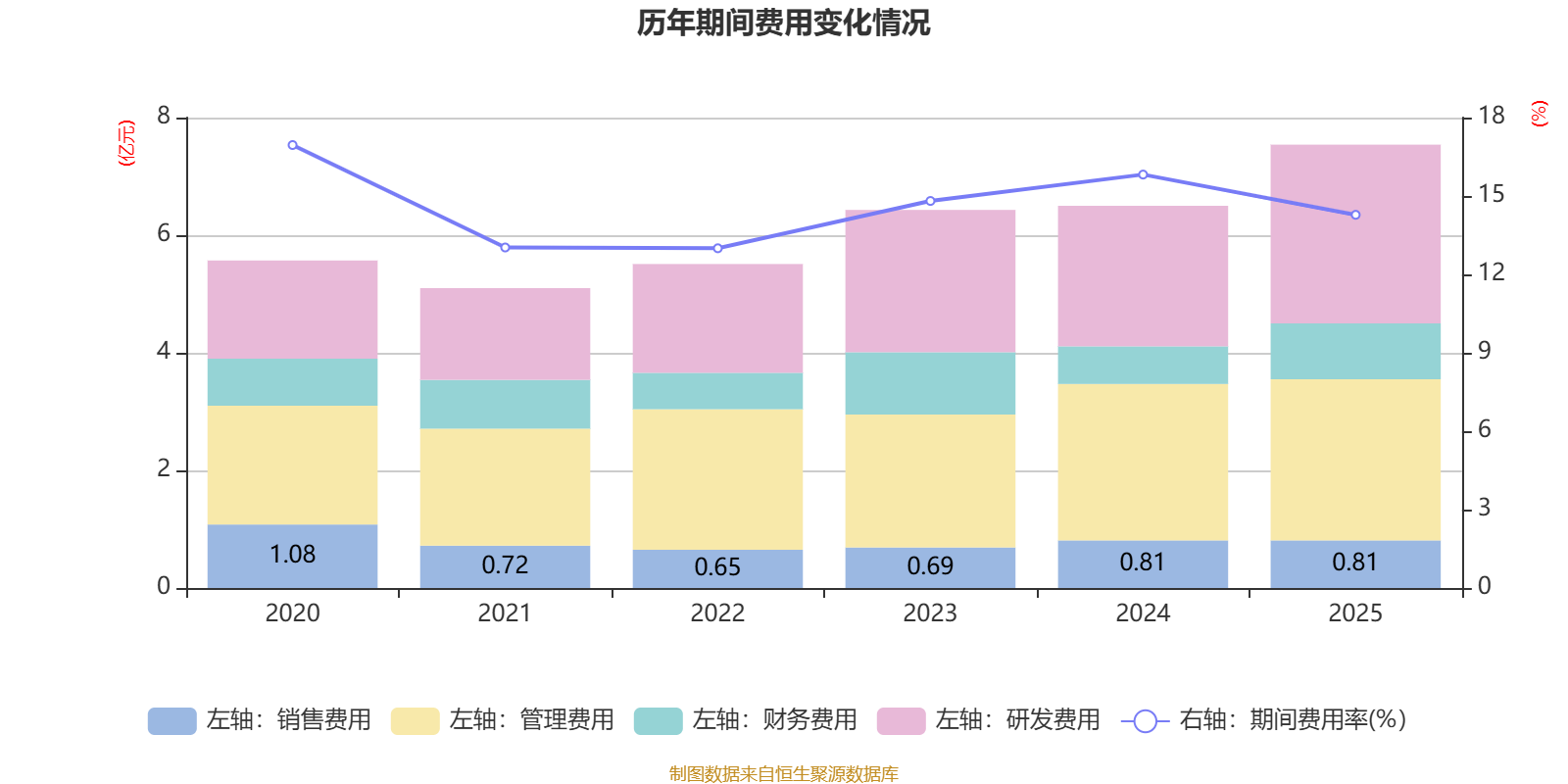 2025年全年,公司研发投入金额为3.1亿元,同比增长17.77%;研发投入占营业收入比例为5.86%,相比上年同期下降0.54个百分点。此外,公司全年研发投入资本化率为1.73%。