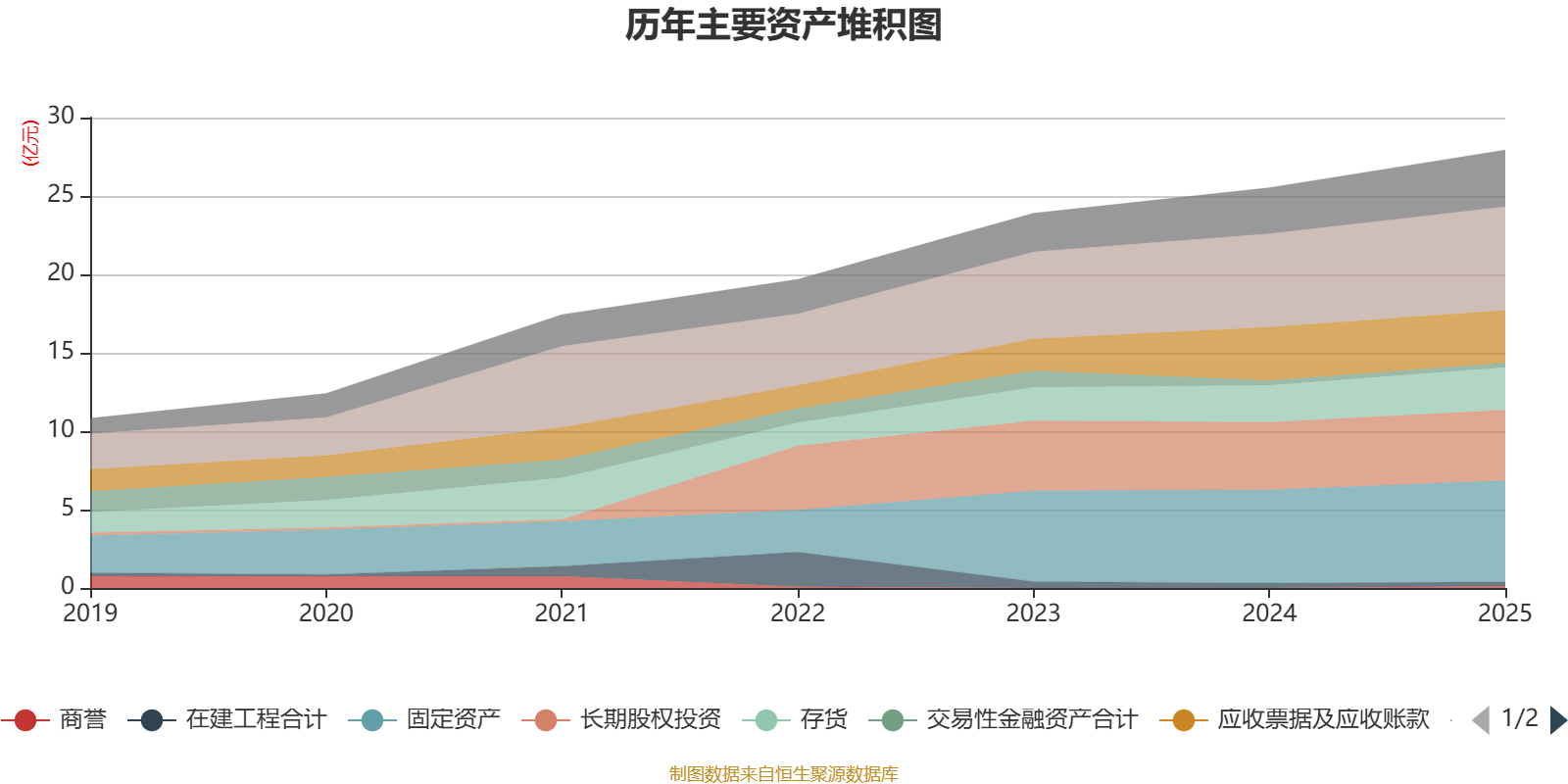 资产重大变化方面,截至2025年末,公司划分为持有待售的资产较上年末减少100%,占公司总资产比重下降2.05个百分点;应收票据及应收账款较上年末减少1.56%,占公司总资产比重下降1.34个百分点;其他流动资产较上年末增加124.24%,占公司总资产比重上升1.34个百分点;应收款项融资较上年末增加120.83%,占公司总资产比重上升0.85个百分点。