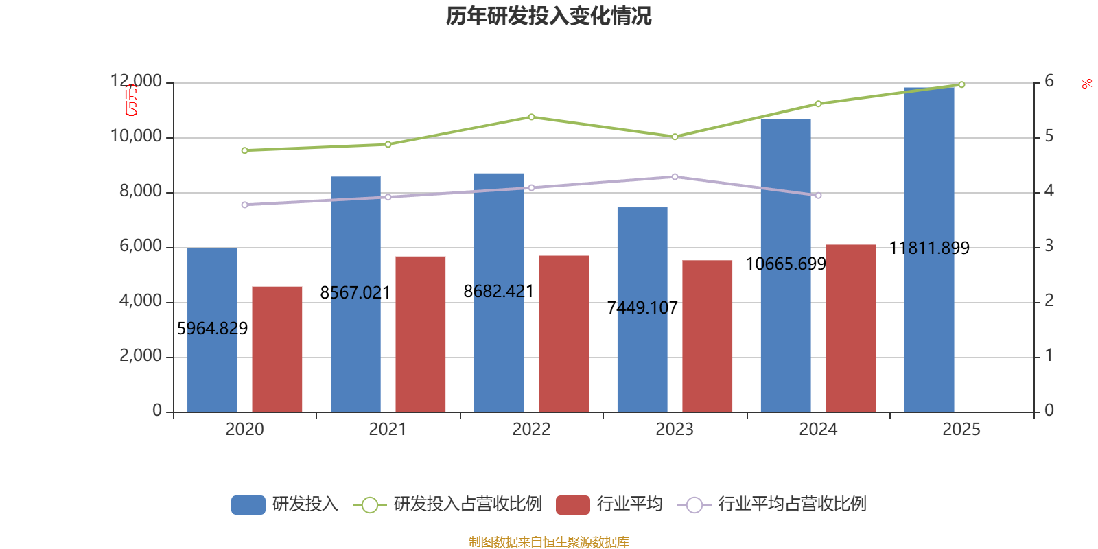 2025年全年,公司研发投入金额为1.18亿元,同比增长10.75%;研发投入占营业收入比例为5.96%,相比上年同期上升0.35个百分点。此外,公司全年研发投入资本化率为0%。