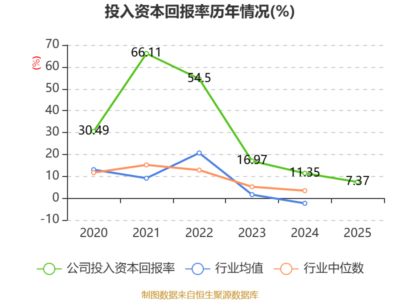 数据显示,2025年公司加权平均净资产收益率为8.5%,较上年同期下降3.9个百分点。公司2025年投入资本回报率为7.37%,较上年同期下降3.98个百分点。