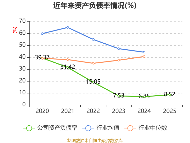 2025年,公司流动比率为9.99,速动比率为9.56。