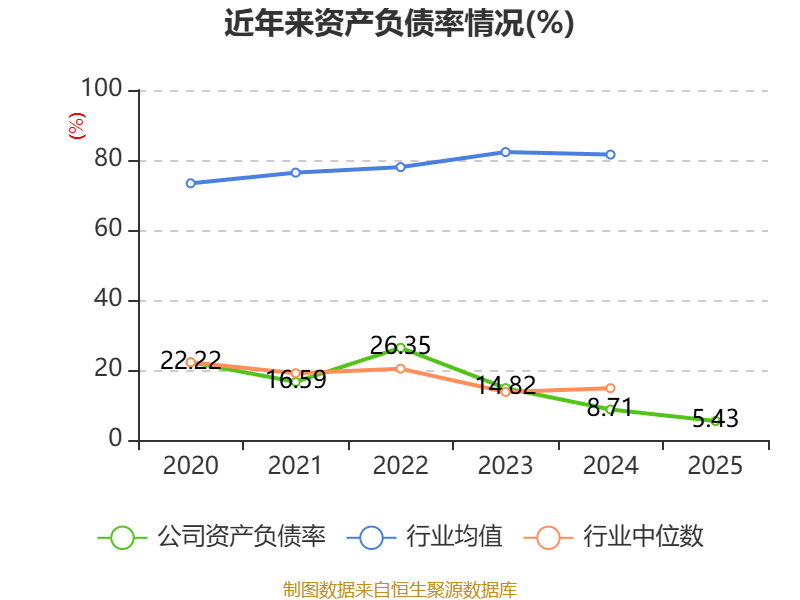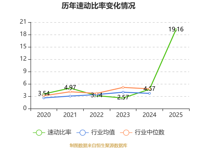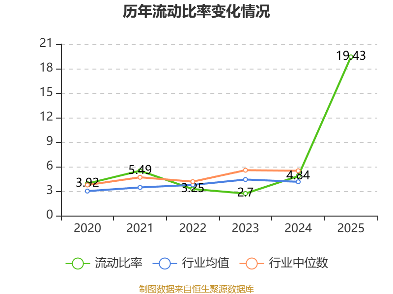 2025年,公司流动比率为19.43,速动比率为19.16。