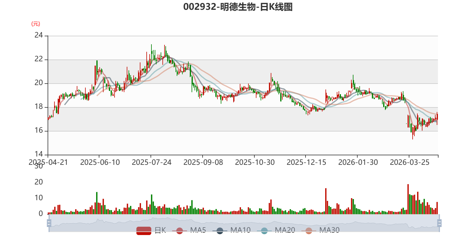 以4月20日收盘价计算,明德生物目前市盈率(TTM)约为-245.79倍,市净率(LF)约0.73倍,市销率(TTM)约15.26倍。