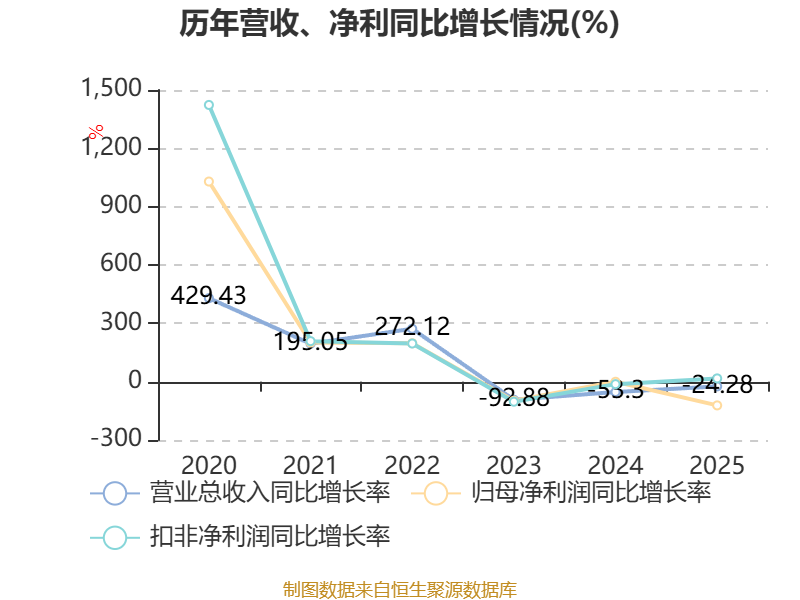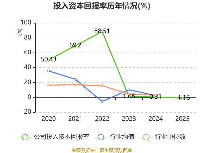 数据显示,2025年公司加权平均净资产收益率为-0.29%,较上年同期下降1.54个百分点。公司2025年投入资本回报率为-1.16%,较上年同期下降1.47个百分点。