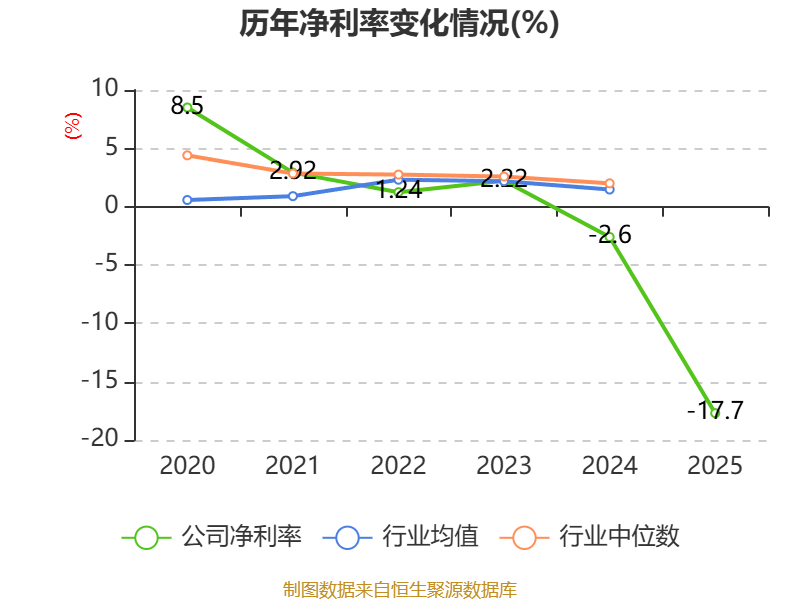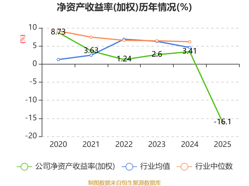 数据显示,2025年公司加权平均净资产收益率为-16.1%,较上年同期下降19.51个百分点。公司2025年投入资本回报率为-8.19%,较上年同期下降8.41个百分点。